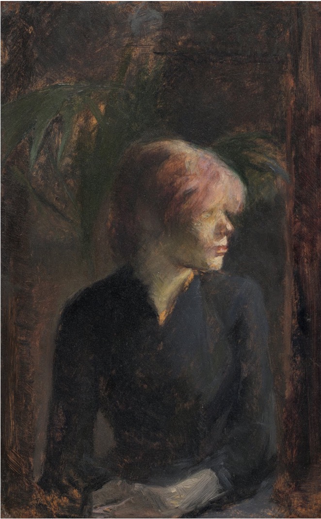 Et là, vous vous demandez :« Quelle est cette matière, derrière la modèle ? Et je vous réponds : — C’est de la peinture ! Mais j’ajoute : — Mur et fenêtres sont suggérés, car, TL, en bon lecteur et ami de Mallarmé, applique ici la leçon, celle qui veut que la suggestion vaut bien mieux que le cru réalisme.» En quelque sorte, pris à la lettre, le réalisme peut en devenir obscène (justement, c’est ce qui fait son succès. — « Regardez comme je souffre », « admirez mes exploits », « enfant, j’ai été traumatisée », etc.). Ainsi donc, TL, qui, paraît-il, fut très peiné par la mort du prince des (soi-disant) Hermétiques, suggère mur et fenêtres. Et plus je regarde ce fond, ce décor, et plus je suis attiré et intrigué. Ce décor, est étrange. Et je me demande si TL n’aurait pas cherché à produire comme une encoignure sur le côté droit de la fenêtre, car il y a comme un retrait oblique à droite du poignet gauche. Ou bien c’est la partie d’un meuble…